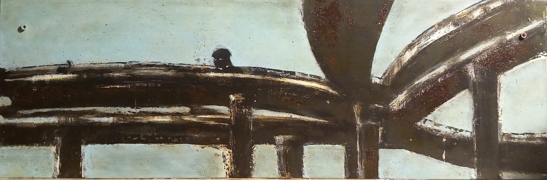 Percorsi fluidi, 2021, Acrilico su lastra di ferro arrugginita incisa acidata, Cm 45x15