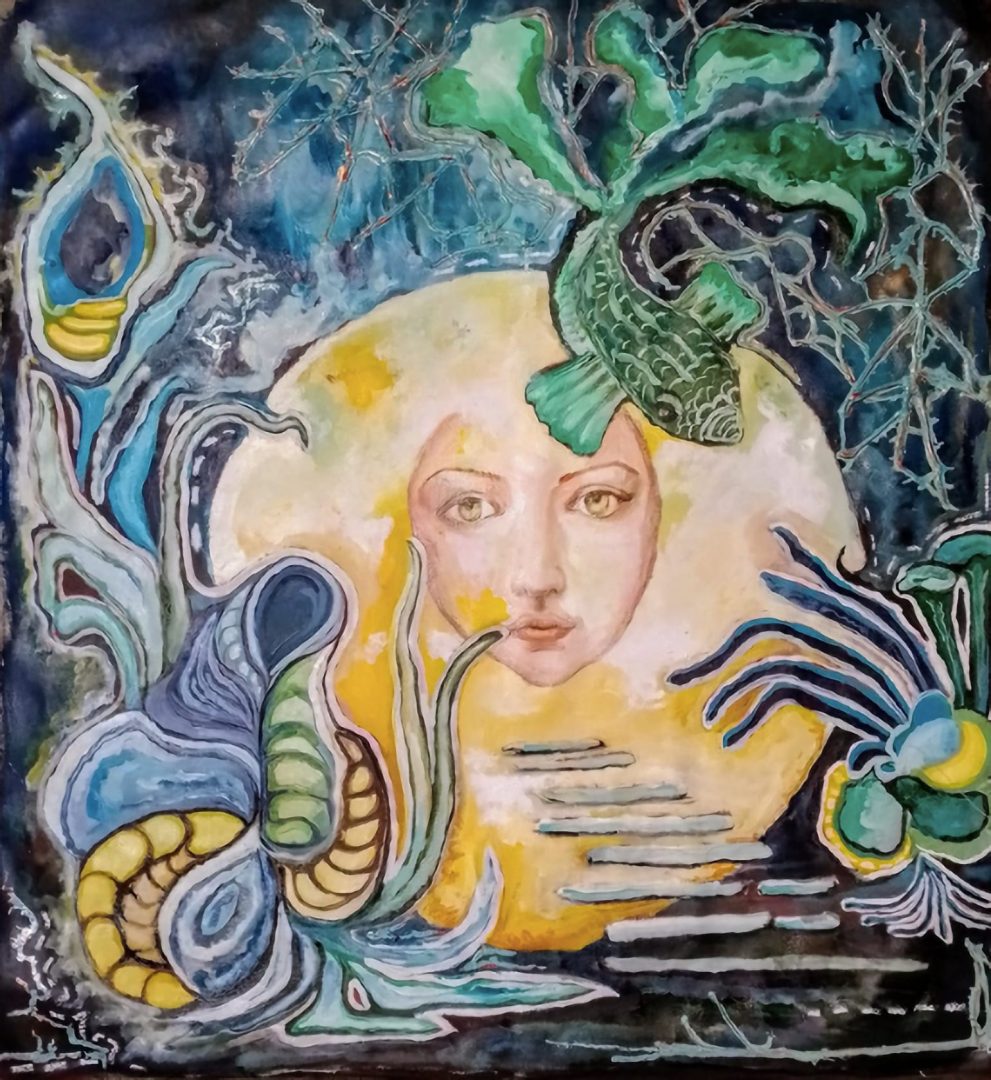 Fondale Marino in metamorfosi, 2023, Tecnica mista su tela, 70x68