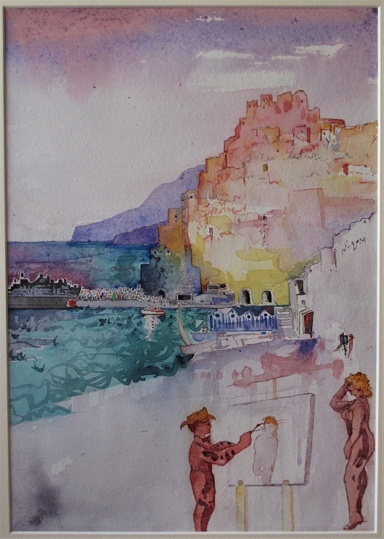 Pittore a Positano, 2023, Acquarello, 30,7x2.,5 cm