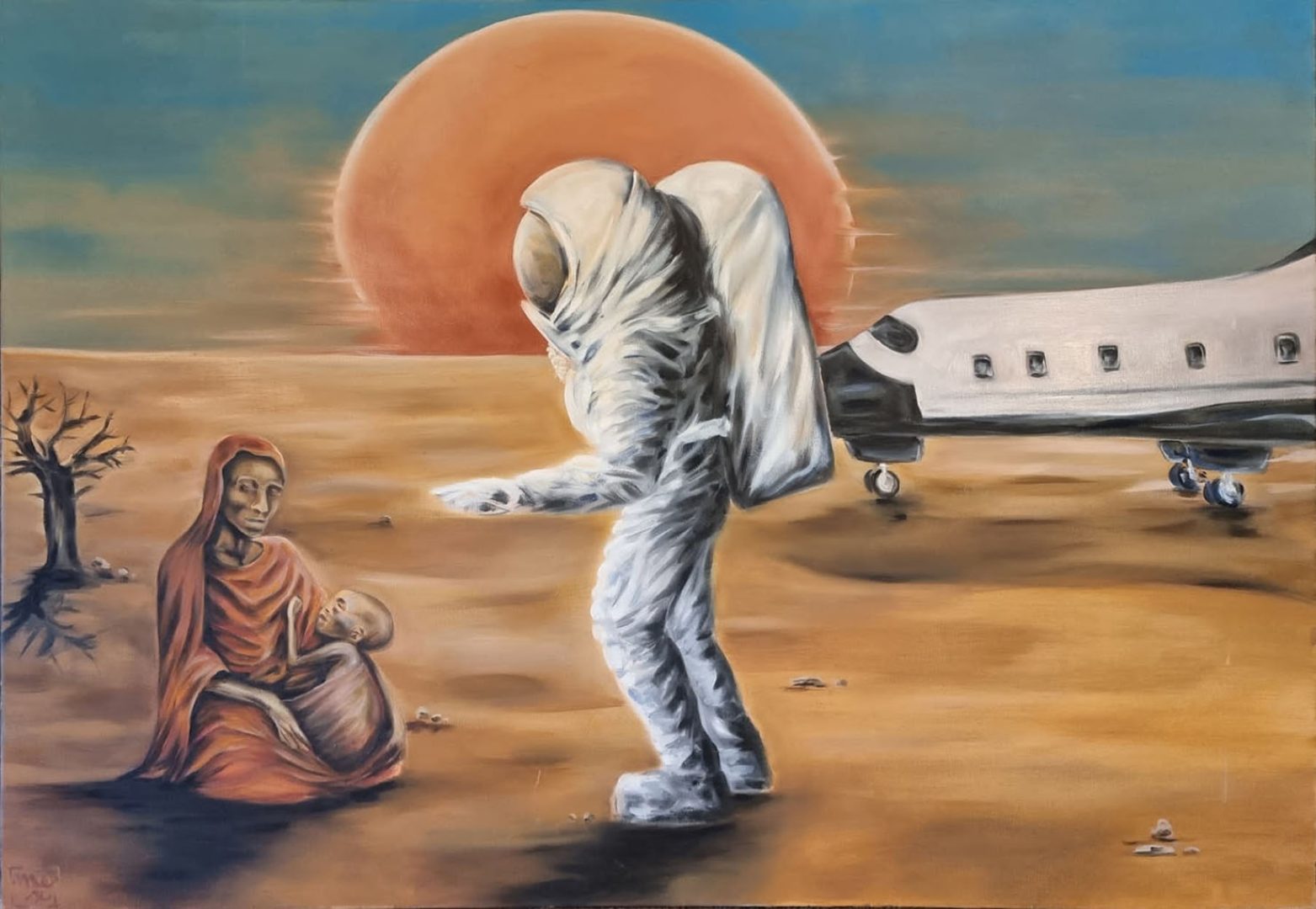 Massimiliano Studioso mio nome è Masì, nato a Roma, vivo e lavoro a Milano. Pittore e scultore, inizio l’attività nel 2007 con la serie “senso e controsenso” basata su paradossi, dove appunto l’opera “terzo mondo” ne rappresenta un capitolo, entrando così nella corrente pop italiana di quel periodo. In seguito dal 2012 ho sviluppato altre serie, orientando il mio stile ad una pittura più introspettiva con la serie “popoli e persone”, che ancora oggi, con continui mutamenti porto avanti.